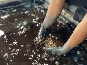 お忙しい中にもかかわらず、「ぜひ染めの工程を見学させてほしい」という私たちのお願いに、快く応じてくださいました。
