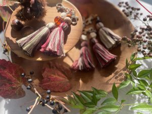 秋限定カラーを追加! 紅葉と栗色の糸で制作もできますし、もちろん、ご自分の好きな色での糸合わせチャームの制作もできます。