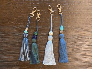 赤穂市御崎にあるAMAMI TERRACEに置いていただいているのは、主にブルー系の色味の糸あわせチャームです。