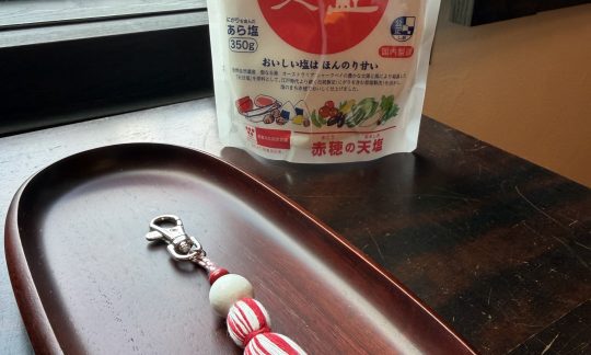 天塩レッド×白色の糸合わせ(しあわせ)チャームを社長にプレゼント!